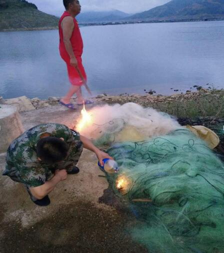 于2016年8月6日、7日凌晨,我公司行政领导及派驻天生桥一级水电站保安队员连续两天对服务单位的安保工作开展了夜间突击检查,对天生桥一级水电站水面禁区违规放网人员进行打击,在7日凌晨四点当场抓获违规捕鱼人员一名,缴获渔网五张,小船一艘。及时为服务单位排除了安全隐患。