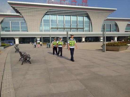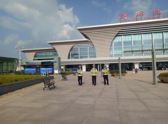 保安公司驻金阳客站、贵阳北站和观山湖区城管各支队人员正在巡逻、执勤。