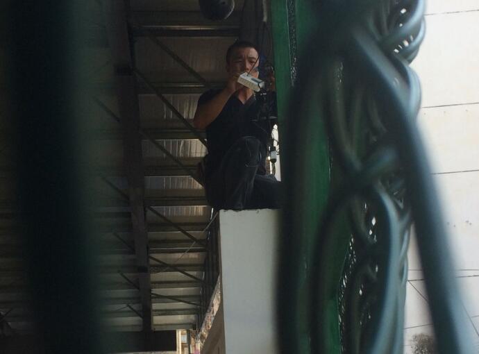 4、工程部技术员张远福在认真安装监控,我们要把每一点关心,每一丝关怀都注入到工作的一丝不苟中,让人民信任,让国家安定。