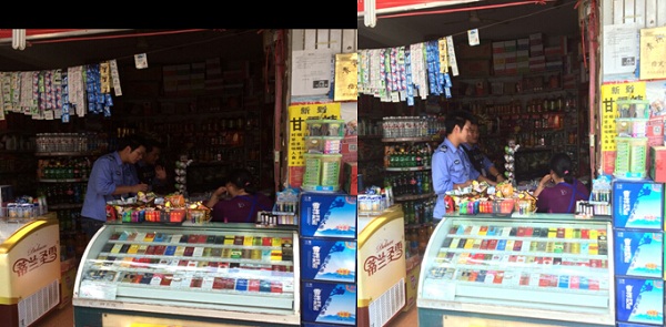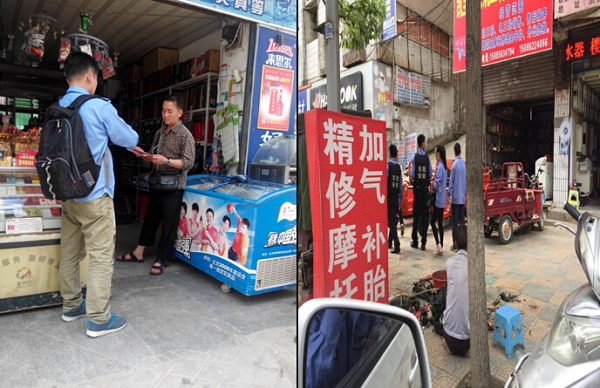 2016年5月11日在凯里市二商场附近给副食店老板介绍我们的